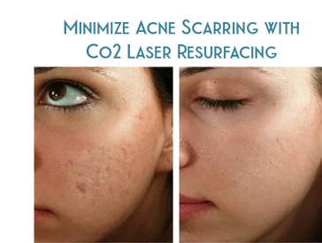 C02 laser treatment helps reduce the appearance of acne scarring by stimulating collagen production that helps tighten and smooth out the scars.